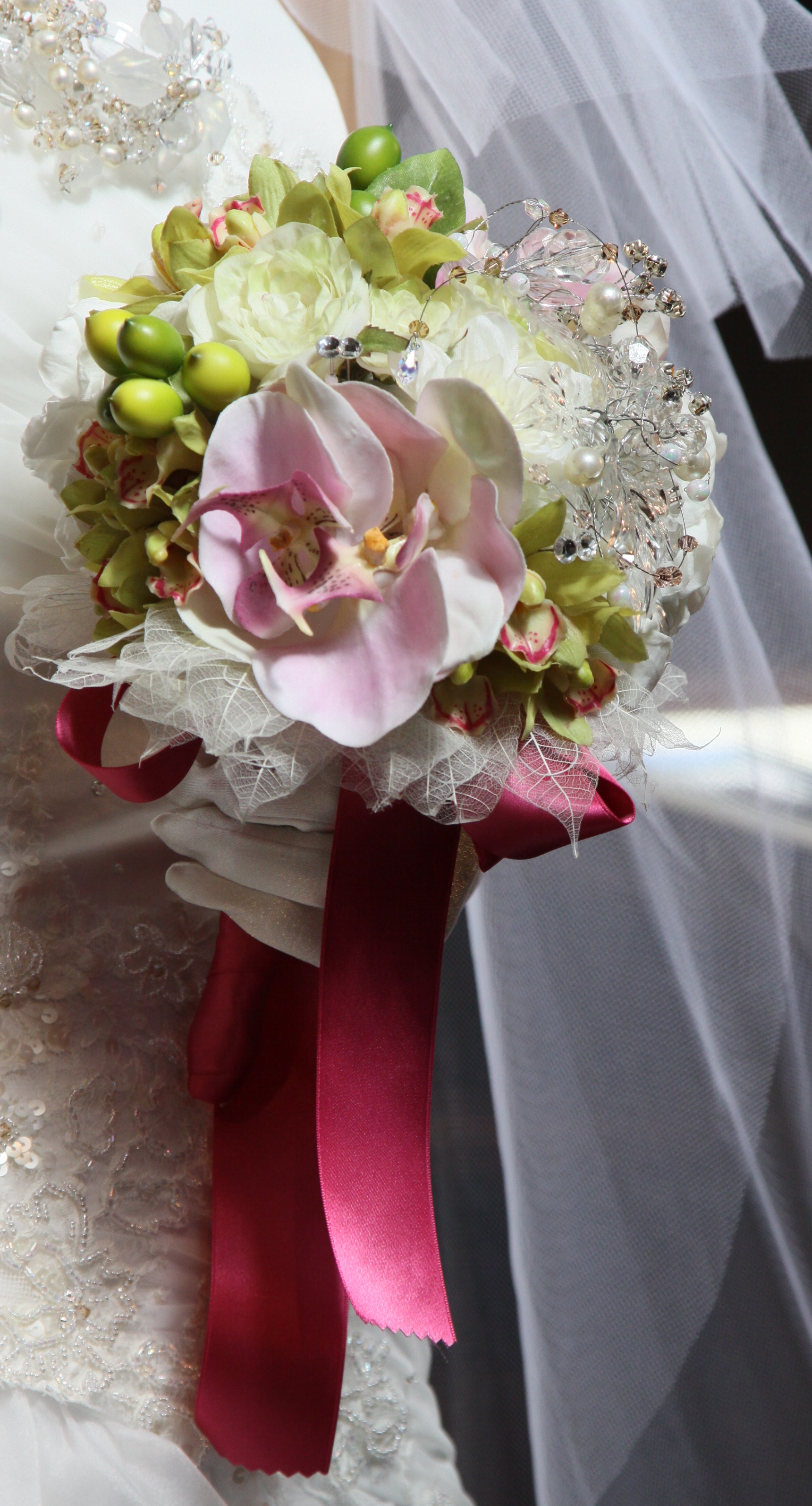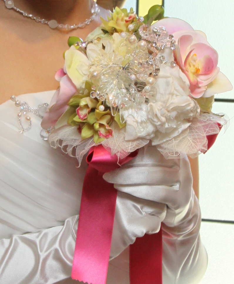 アーティフィシャルフラワーとプリザブドフラワーの融合で、ウェディング小物をご提案致します。
